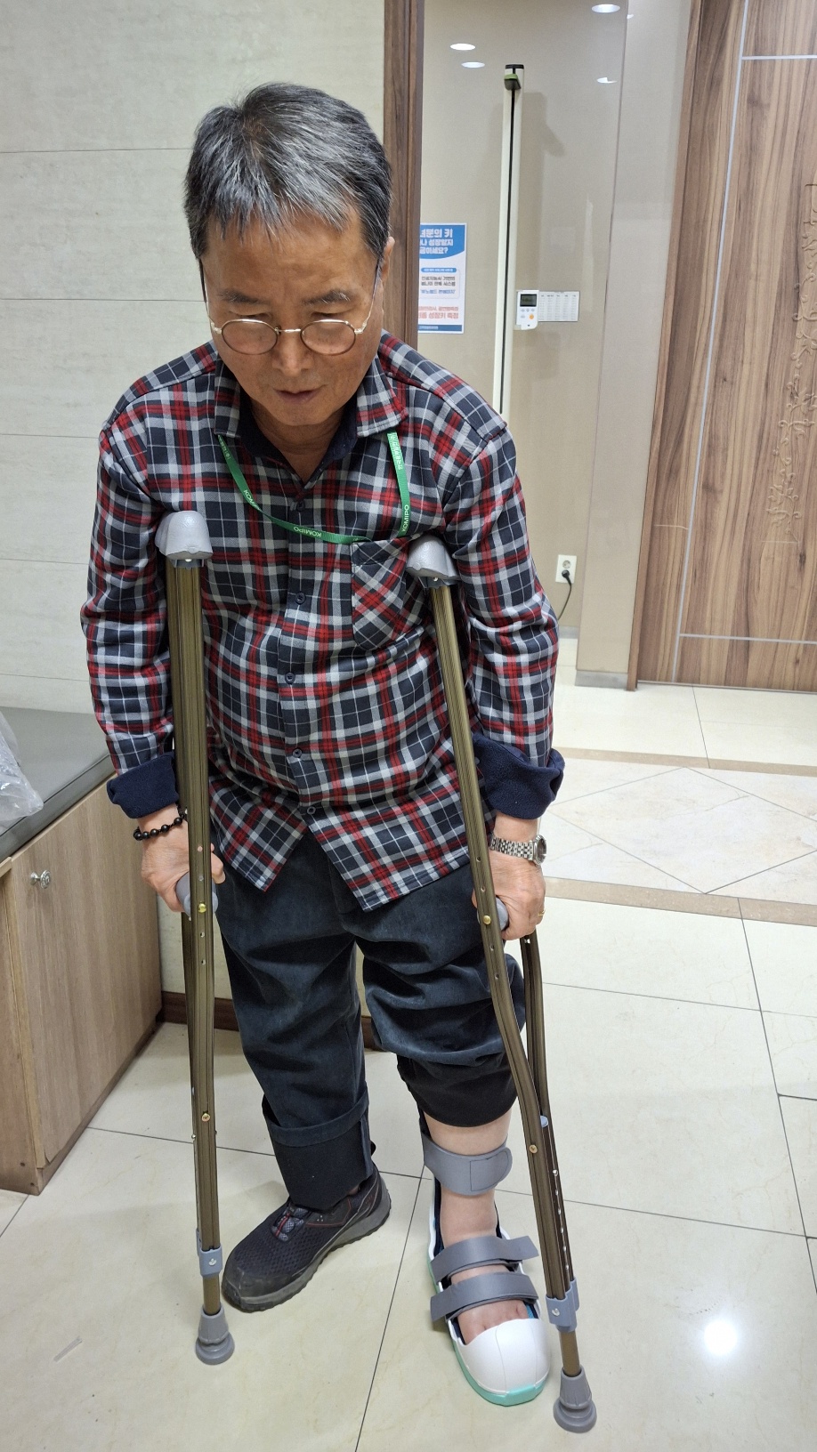 김) 그러니까 계단이라고 해봐야 여섯 개인 사택에서 새벽에 굴러 떨어져 이 모양이지요. 저는 푼수입니다.